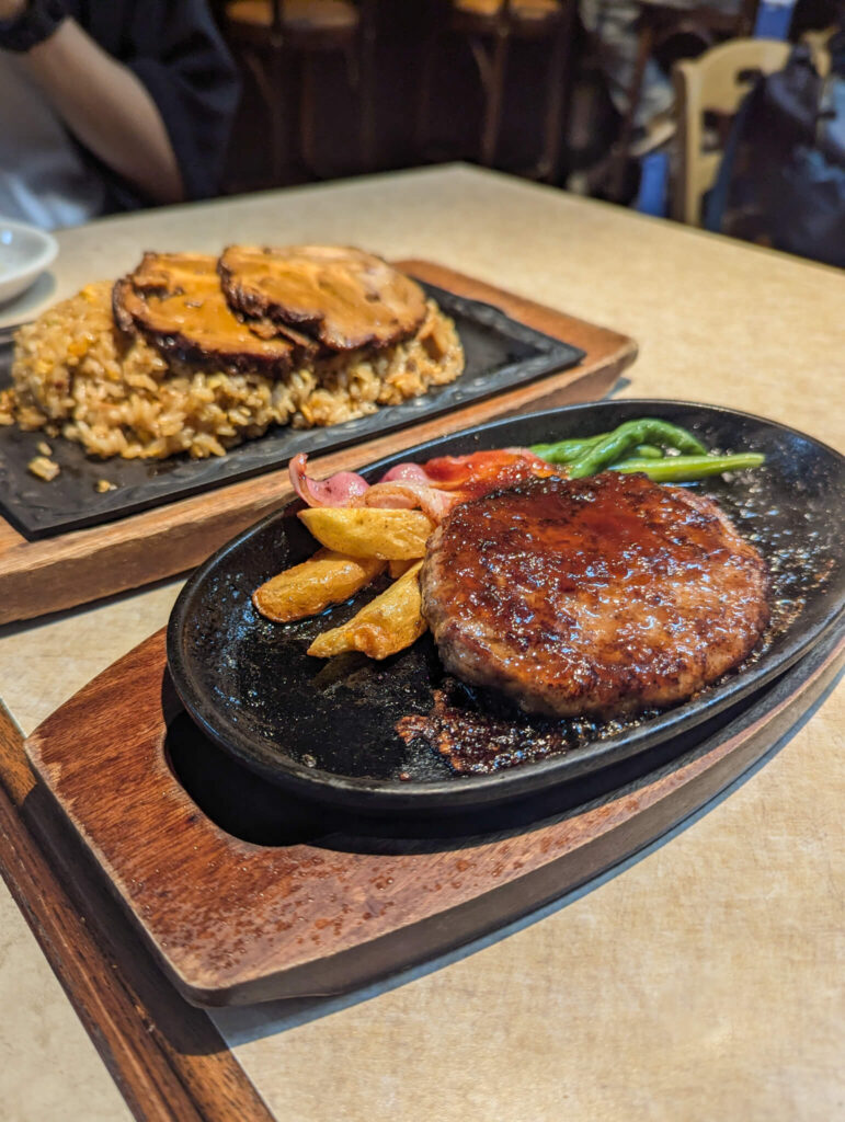 - 必點大山漢堡 (醬汁入味,表面煎到入口微脆內軟,在鐵板上熱騰騰,不管味道還是色香都是一流)
